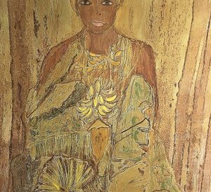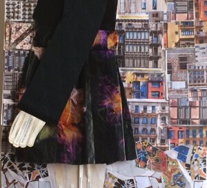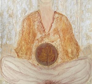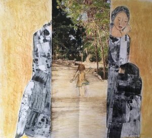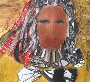 Gli sfondi delle mie donne che escono dai muri sono materici perché voglio che abbiano la concretezza e la terrosità dei muri veri, dai quali faccio emergere la figura femminile come un’icona sacra. Spesso parto dalle immagini dei muri che ho fotografato viaggiando, aggiungo altri pezzi di carta che strappo, dipingo con colori solari e ricopro di sabbia, terra, spezie, che gratto e coloro di nuovo, creando strati su strati, fino a realizzare l’aspetto materico di un vero e proprio muro.