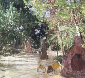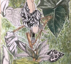 Poi, come con i cespugli che sono diventati dei nidi o con i turbanti che ho trasformato in sculture, lavoro di nuovo la stampa nei diversi strati che compongono l’immagine e si sovrappongono, fino a diventare qualcosa di più tangibile e terroso, mentre aggiungo ancora colori che poi invecchio e tratto con la carta vetrata, sottolineando dei segni e aggiungendo altri materiali. E a quel punto l’immagine si è trasformata creativamente e può raccontare la sua storia.