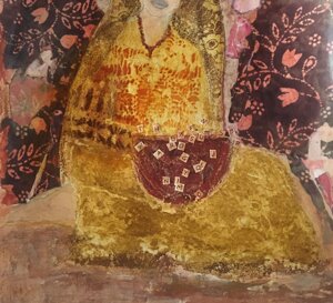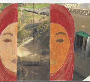 Anche le figure femminili sono per me dei contenitori. Ho iniziato con i ritratti di persone vicine, ma poi ho scelto di disegnare donne del nord Africa, del medio ed estremo oriente perché per me rappresentano delle icone femminili, delle madonne laiche che, nelle poesie che ho letto parlano con immediatezza, semplicità della loro condizione di donna, come alcune delle scrittrici che ho più amato- Fatema Mernissi, Malika Mokeddem, Maram Al Masri, Moniza Alvi- ma anche perché ho vissuto i primi anni della mia vita in Egitto. Preferisco comunque dipingere le donne di altri mondi perché le posso osservare dalla giusta distanza, riscoprendo attraverso di loro valori come la bellezza e la dignità, anche in situazioni di estrema povertà, perché attraverso i loro gesti e le loro abitudini trasmettono il loro patrimonio interiore segreto. Penso ad esempio alle donne che per andare al mercato si vestono, si drappeggiano, si mettono monili e curano la loro bellezza dando grande importanza ai dettagli. Sono donne che esprimono la forza dei gesti veri, che vivono in luoghi protetti, ma che quando escono di casa per fare la spesa riportano dal mondo esterno impressioni, scambi ed esperienze, che danno potenza e significato ai loro gesti abituali, in un percorso circolare che è lo stesso che faccio io con le immagini.Gli sfondi